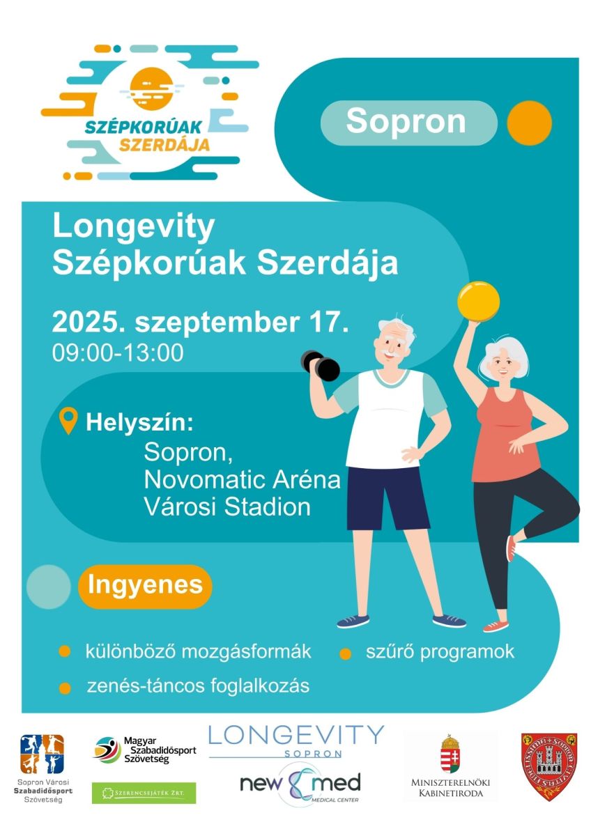 Longevity Szépkorúak Szerdája Sopron 2025 2025. 08. 18. Kiírás Regisztráció Facebook Díjmentes, előre meghatározott (rutin) vérvétel - regisztráció